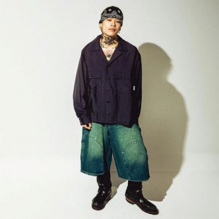 オールドなミリタリーシャツをベースに、ジャケットのように羽織れるデザイン性にアップデート。ハリがありつつも柔らかい生地感で、綺麗なルーズシルエットを保ちます。