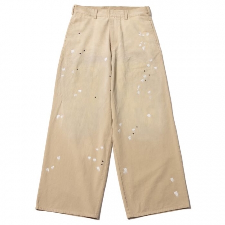 ウォッシュ加工とペイント加工を組み合わせて仕上げた、バギーなシルエットのワークパンツです。1点1点風合いが異なり、1点もの感も楽しめます。