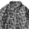 「フロッキー加工で独特の表面感を演出した総柄シャツ。