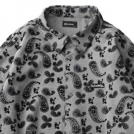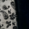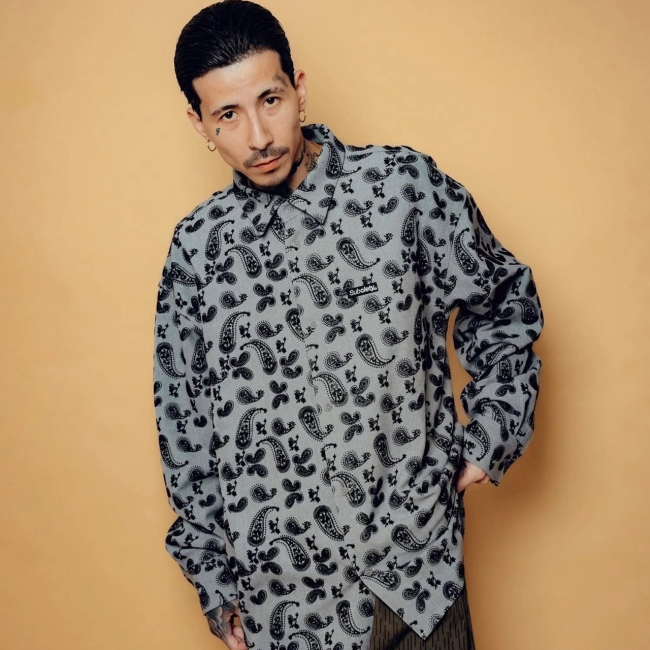 肌触りが柔らかく、ドレープ感のあるレーヨン混素材を採用。ブランドを象徴するペイズリー柄を全体にフロッキー加工で施しました。ノーマルプリントとはひと味違う独特の立体感・表面感が魅力。