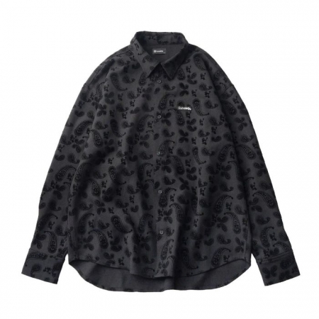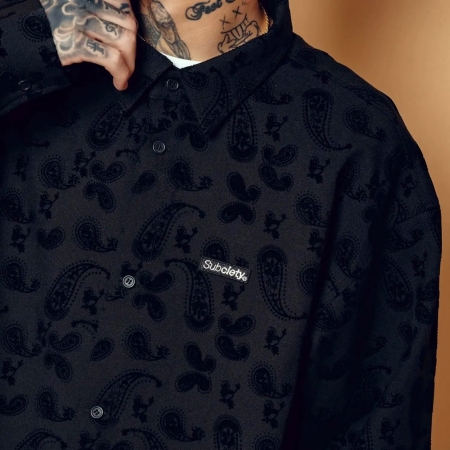 「フロッキー加工で独特の表面感を演出した総柄シャツ。