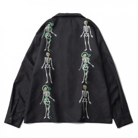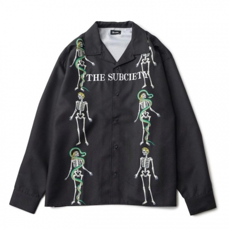 コミカルなスカルをパネルプリントしたオープンカラーシャツ。トラディショナルな開襟シャツのディティールを残しつつ、身幅・アームホールにゆとりを持たせたストレスフリーなシルエット。