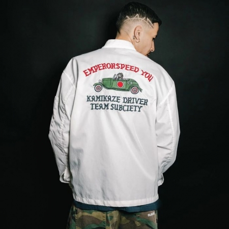 フロントには様々なワッペンを配備し、バックにはHot Rodチームをイメージしたグラフィックを大判刺繍で施しました。フロントのフラップ付きポケット、左袖のポケットなどディテールにもこだわったアイテム。」
