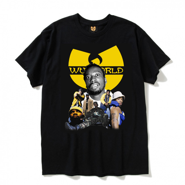 フロントに WU-WORLD ロゴと、コラージュされたメンバーのフォトがプリントされた SS Tシャツです。