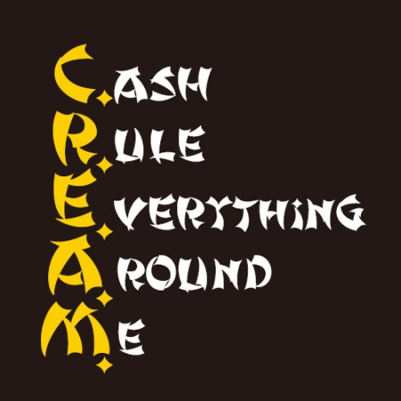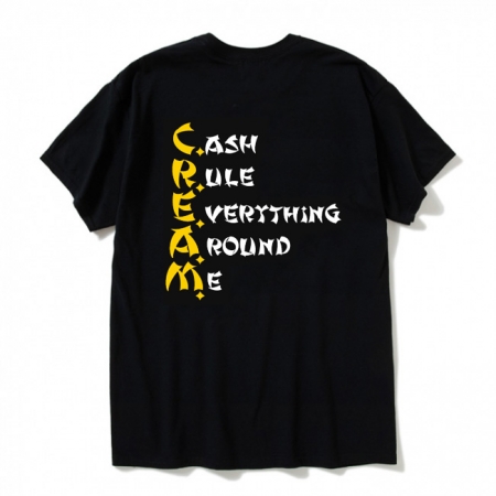 左胸に WU ロゴ、バックに WU-TANG の名曲 タイトル C.R.E.A.M.(Cash Rules Everything Around Me)がプリントされたプリントされた SS Tシャツです。