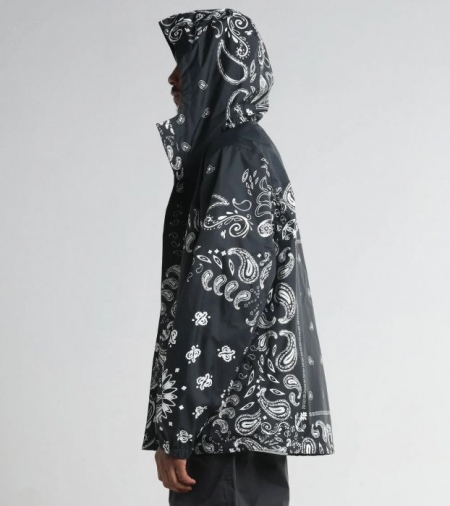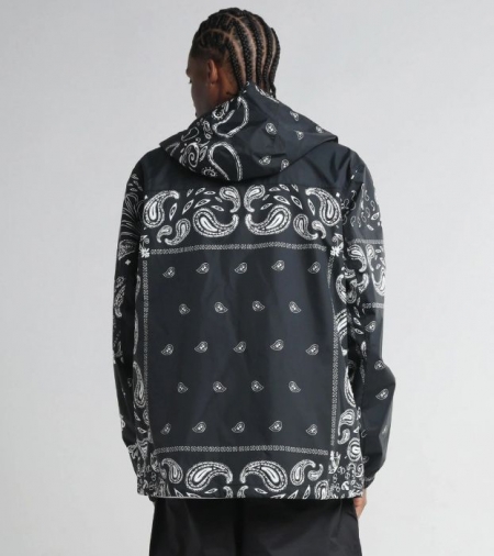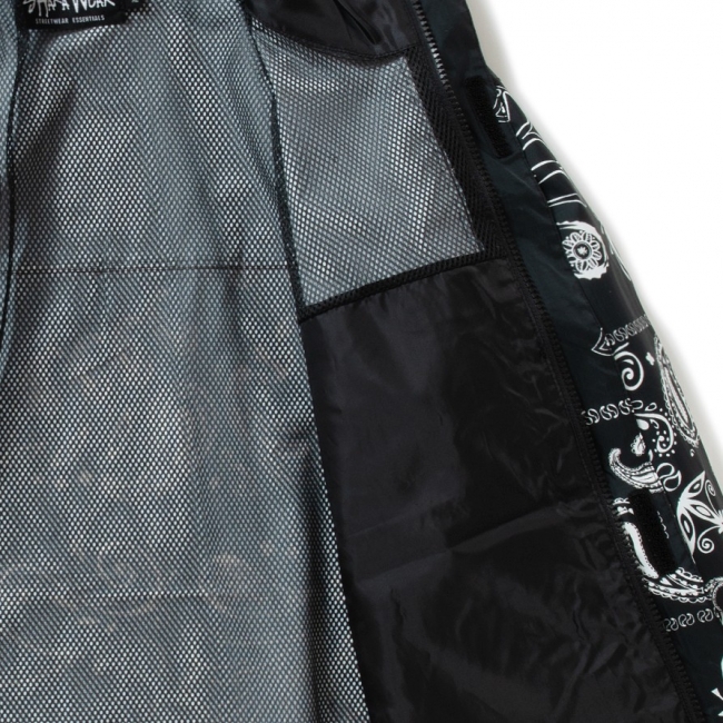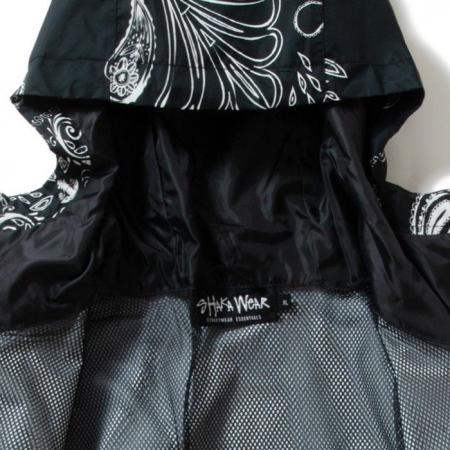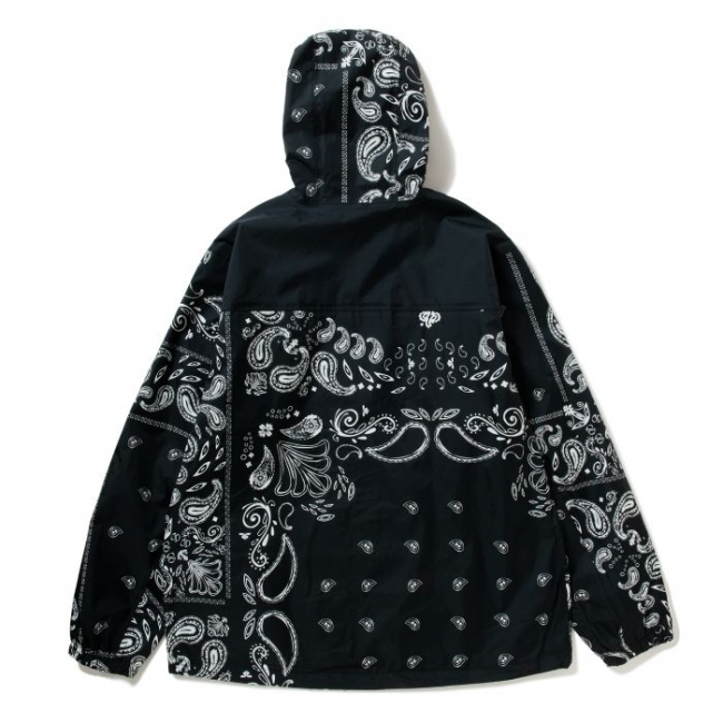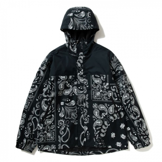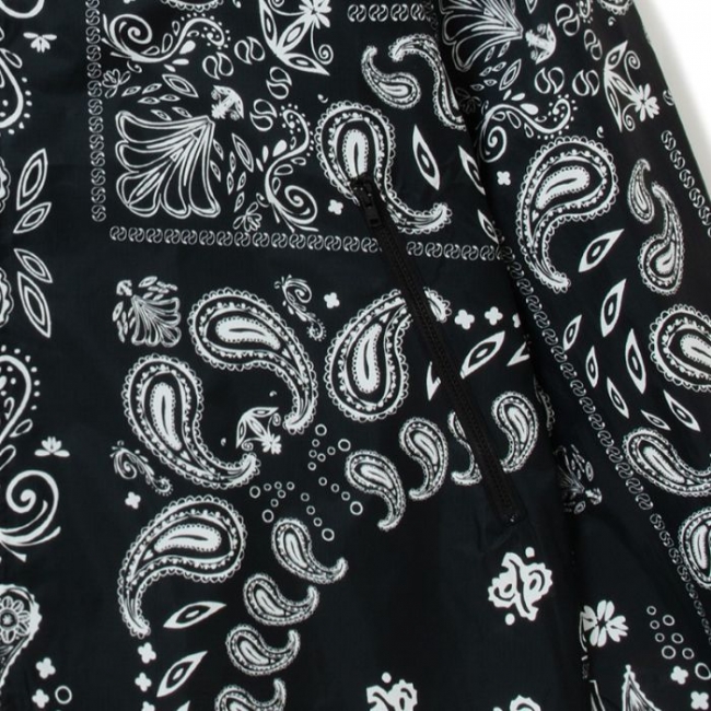 シンプルなブラックカラーに加えてペイズリーモデルがラインナップ。メッシュ素材の裏地やジッパー付きポケット、シルエットを調整できるドローコードなど、機能性も備えたナイロンシェルジャケット。使い勝手が良く幅広いシーズン活躍してくれるオススメアウターです。