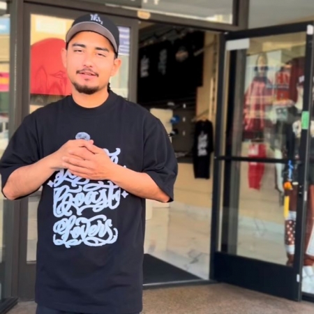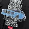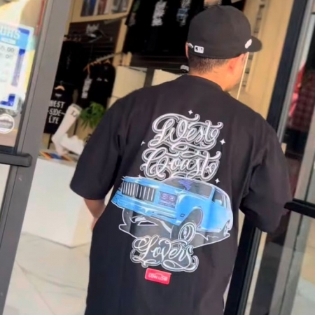 厚手の生地を巧みに使用したWEST COAST LOVERSは、快適でスタイリッシュなゆったりとしたフィット感を提供します。フロントにはユニークなシェニール刺繍、バックには高級感あふれるドイツ製のスクリーンプリントが施されています。このマストハブTシャツで、あなたのワードローブを格上げしましょう。