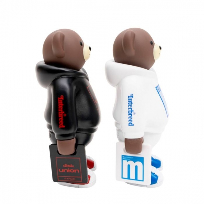knick knacks 製のベアー型ソフビ ”DIGGIN BEAR” をベースに、本体胸にはdiskunion / Maanhattan Records それぞれのロゴプリント、右腕には INTERBREED ロゴプリントが入っています。付属のレコードバッグには着脱可能。製品はスライド式のブリスターパック入っています。