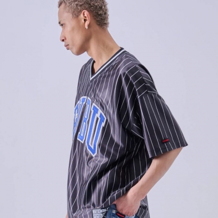軽量で動きやすいポリエステルジャージ素材を使用。通気性が良く、さらっとした着心地で長時間の着用でも快適です。汗をかいても乾きやすく、ダンスやスポーツなどのアクティブシーンにも最適。フロントに大胆な FUBU ロゴ を配置したストリートデザインで、スポーツユニフォームをイメージした Vネック仕様とレオパード柄が、ストリートとスポーツを融合したスタイルを演出します。