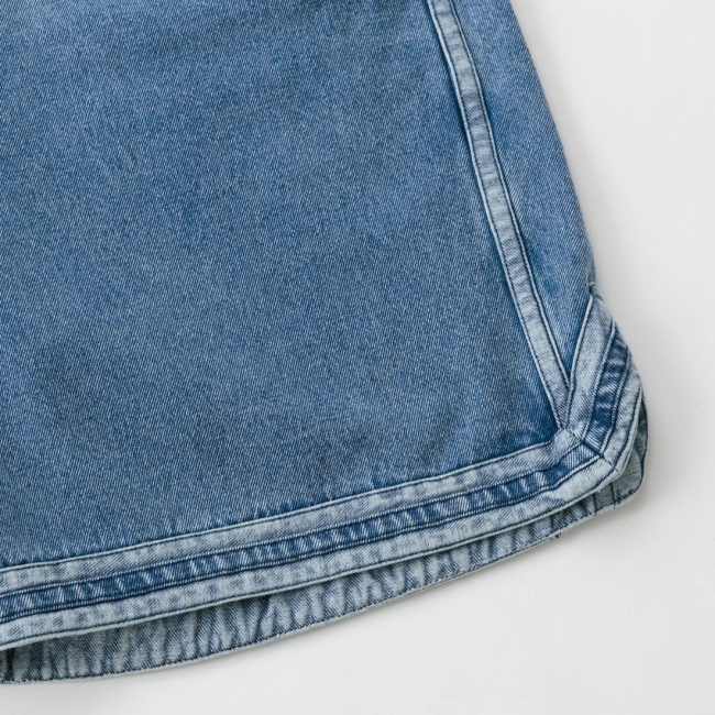 程よい厚みの 8.5オンスデニム素材を使用したショートパンツ。デニム特有の風合いと耐久性を兼ね備え、ストリートスタイルにぴったりの素材感です。