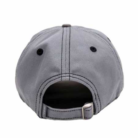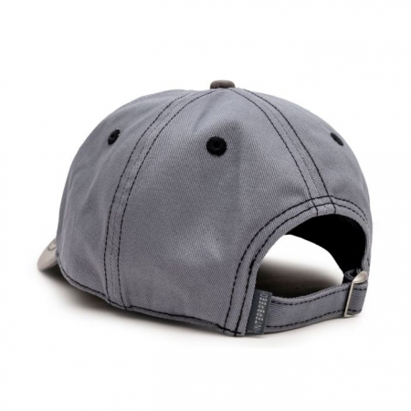 着用時の綺麗なフォルムや適度な深さが特徴のオリジナルシルエットで、トップにはコットンツイル生地を使用、バイザーとトップボタンは切り替えでレザー(本革)を使用しています。バイザーは緩やかなラウンドタイプ、後部はアジャスターベルト仕様となります。ブラックステッチを全体に効かせたデザインで、フロント/バイザー上にはそれぞれロゴ刺繍が入ります。