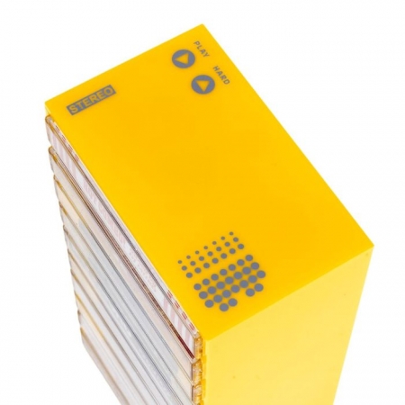 INTERBREED RECORDS のロゴやアイコンが映える、アクリル製のカセットテープラックです。
