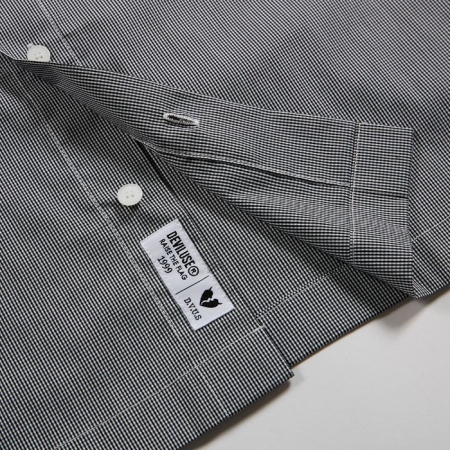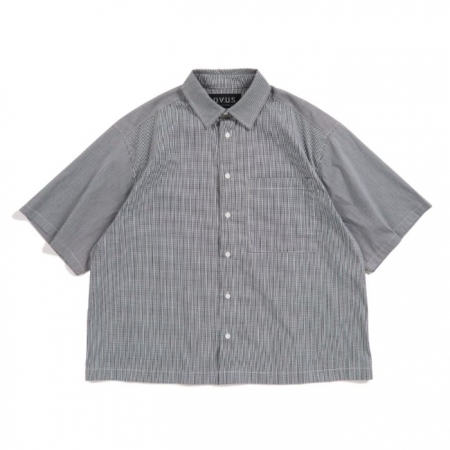 細かいチェック柄の生地を使用した BOX シルエットのチェックシャツ。身幅はルーズで着丈は少し短めでシルエットも抜群です。