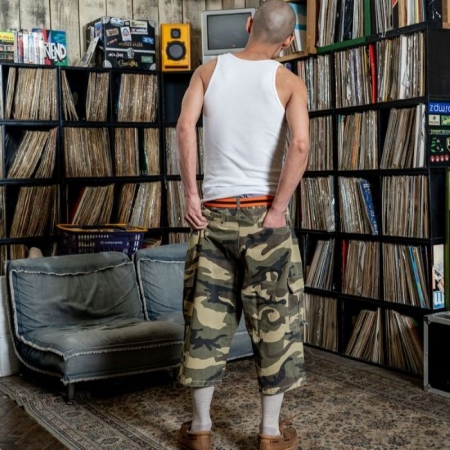 重過ぎず程良い肉感のカモフラージュ柄のコットンツイルを使用し、ウォッシュ加工を掛ける事で雰囲気の良いアタリとフェード感を引き出しています。シルエットはボリュームのあるワタリが特徴のオリジナルシルエットで、独特のバランス感を演出出来る 8分丈のレングスとなっています。フロントにはオリジナルのドーナツボタンを使用、 両サイドにはカーゴポケットが付属しています。