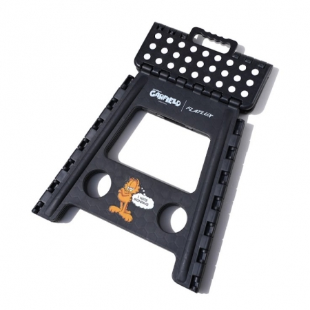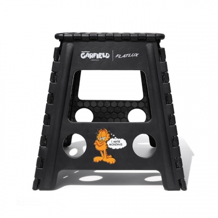 「月曜が大嫌い。週末のために生きる。1978年にアメリカの新聞漫画で誕生、世界一有名になったぽっちゃり猫 ガーフィールドと FLATLUX のコラボレーション。簡単に組み立てができる折りたたみ式のステップ。 耐荷重120kgまでとしっかりとした作りで安定感があり、ステップとしてだけでなく、スツールとしても活用可能。 折りたたむと厚さ4cmなので部屋のちょっとしたすき間に入れられるし、アウトドア、洗車、スキースノーボードの駐車場、などなど使い勝手抜群。